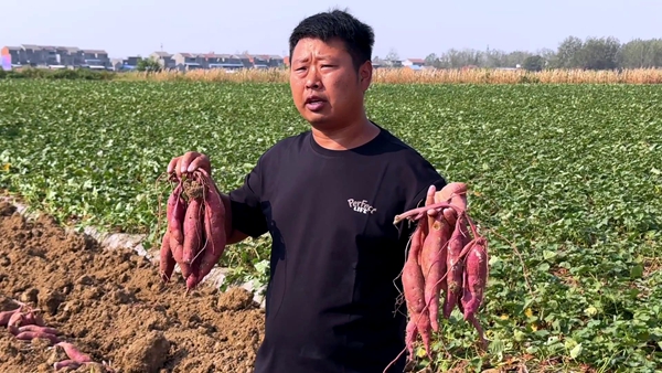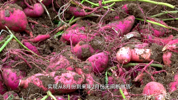 看着丰产的新品红薯,村民周彩燕不由赞叹,我们这儿的红薯口感好,没有筋和丝,软糯香甜,好吃得很。