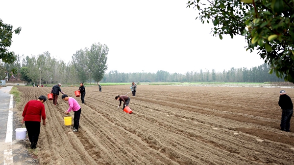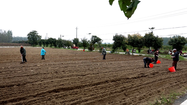 本网讯(全媒体记者 郭哲达 余林)近日,在酂阳街道王府洲府洲村的田地里,20多位村民趁着晴好天气,忙着开沟、施肥,播种中药材元胡。